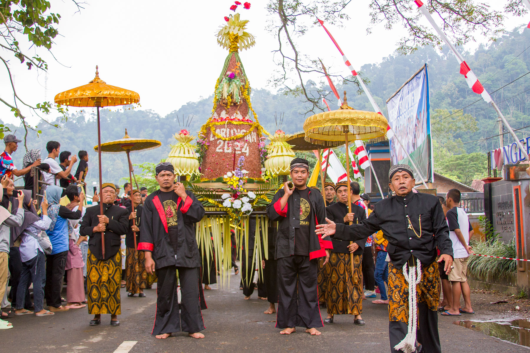 Ponorogo | RuangRana.com – Puncak rangkaian Grebeg Suro 2024 di Kabupaten Ponorogo ditutup dengan tradisi larungan di Telaga Ngebel. Larungan di Ponorogo sudah menjadi tradisi saat memasuki awal tahun baru Jawa di tanggal 1 Suro. Upacara larung sesaji ini rutin digelar tiap tahun oleh Pemerintah Kabupaten Ponorogo dengan tujuan menjaga adat budaya masyarakat setempat, sekaligus sebagai daya tarik bagi wisatawan. Larung sesaji yang selalu diselenggarakan di Telaga Ngebel, Kecamatan Ngebel, Kabupaten Ponorogo berlangsung dengan meriah pada Minggu (7/7/2024) dengan menyediakan 9 buceng atau tumpeng besar.